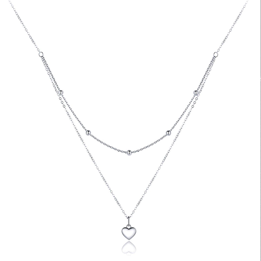 Collar de cadena de doble capa con colgante de corazón