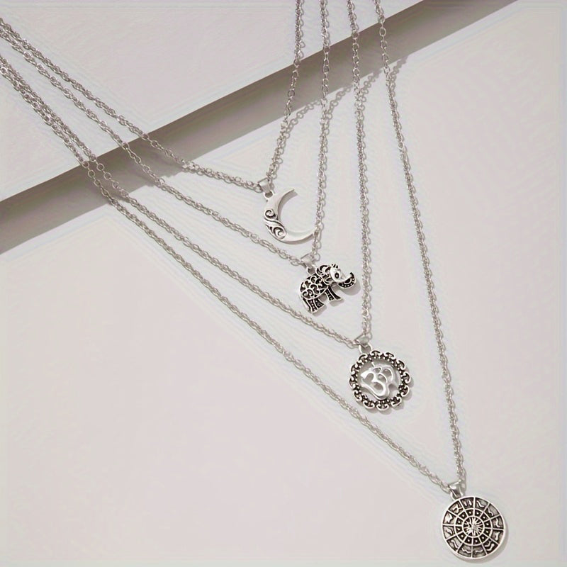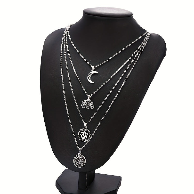 Material: AleaciónTipo de Collar: Collar con Colgante(Collar 1) Longitud: 40 cm - 45 cm(Collar 2) Longitud: 43 cm - 48 cm(Collar 3) Longitud: 49 cm - 54 cm(Collar 4) Longitud: 58 cm - 63 cmEstilo: Bohemio, Vintage